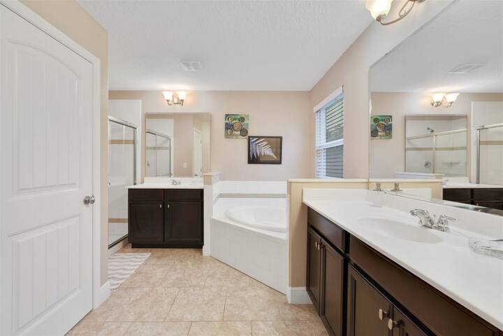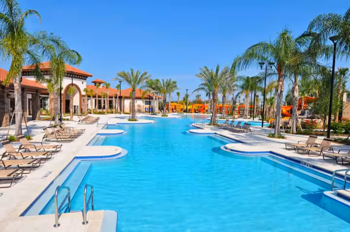 Experience the perfect blend of comfort and fun at Soutfacing Villa, where our spacious dining area accommodates everyone with ease, surrounded by plush seating that invites relaxation. Unwind on our cozy sofas or catch your favorite shows on the large flat-screen TVs, while the laughter from the game room echoes nearby, featuring exhilarating ping pong, billiards, and poker tables, making every moment memorable. Whether you’re sharing meals or enjoying entertaining activities, our villa is designed to be the heart of your getaway in Solterra.